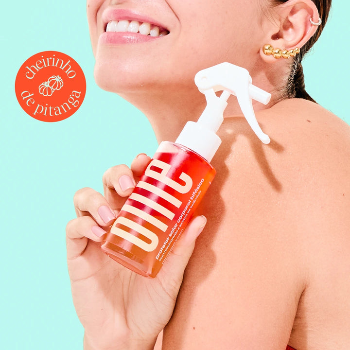 A praticidade vem do Protetor Solar Corporal Bifásico, que une textura leve, absorção rápida e cheirinho de pitanga — tudo em um spray super refrescante e fácil de aplicar, graças à sua tecnologia bifásica.